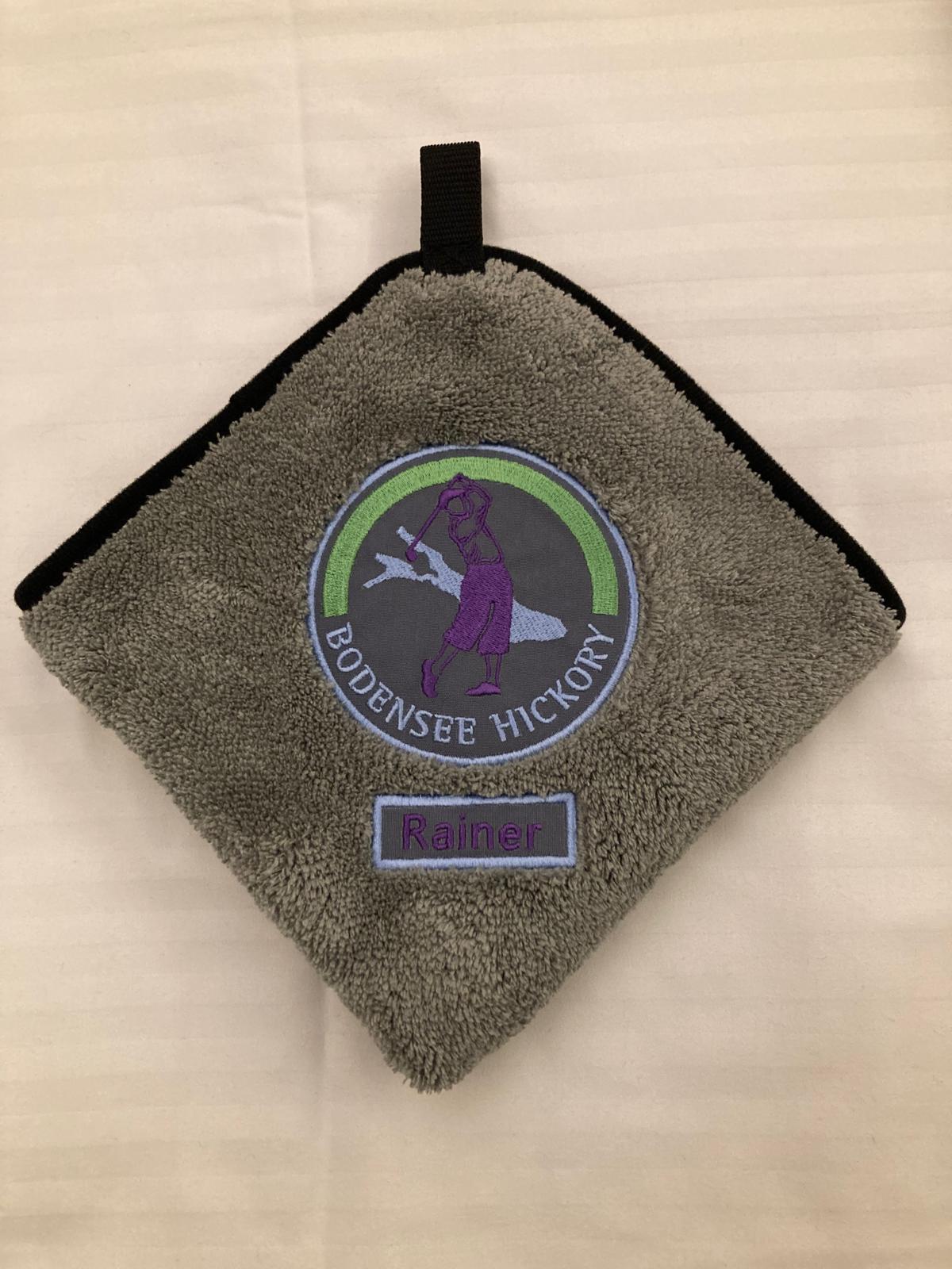Nach meiner Rückkehr erhielt ich von Starlight Sensation ein Mustertuch mit dem Logo der Bodensee Hickory Society. Seitdem habe ich stets saubere Schläger – und ein Tuch, das auch nach vielen Einsätzen hygienisch bleibt. Es kann problemlos bei 40 bis 90 Grad in der Waschmaschine gereinigt werden.